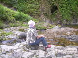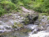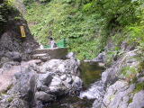 | ここが入り口♪ | 洞窟を出ると滝の上♪ | この水が滝になる ♪ |