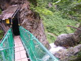 この滝の上に洞窟があり、橋が掛かっています。