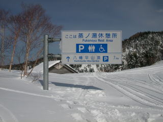 今日は午後から 除雪をしていないアスピーテライン を滑ることにしました。 スキー場のリフトを降りてから ふけの湯温泉を下に見ながら横道を とおり、この看板のある所まで 出てきました。すごい積雪でしょ。 3メートル以上あります。 |